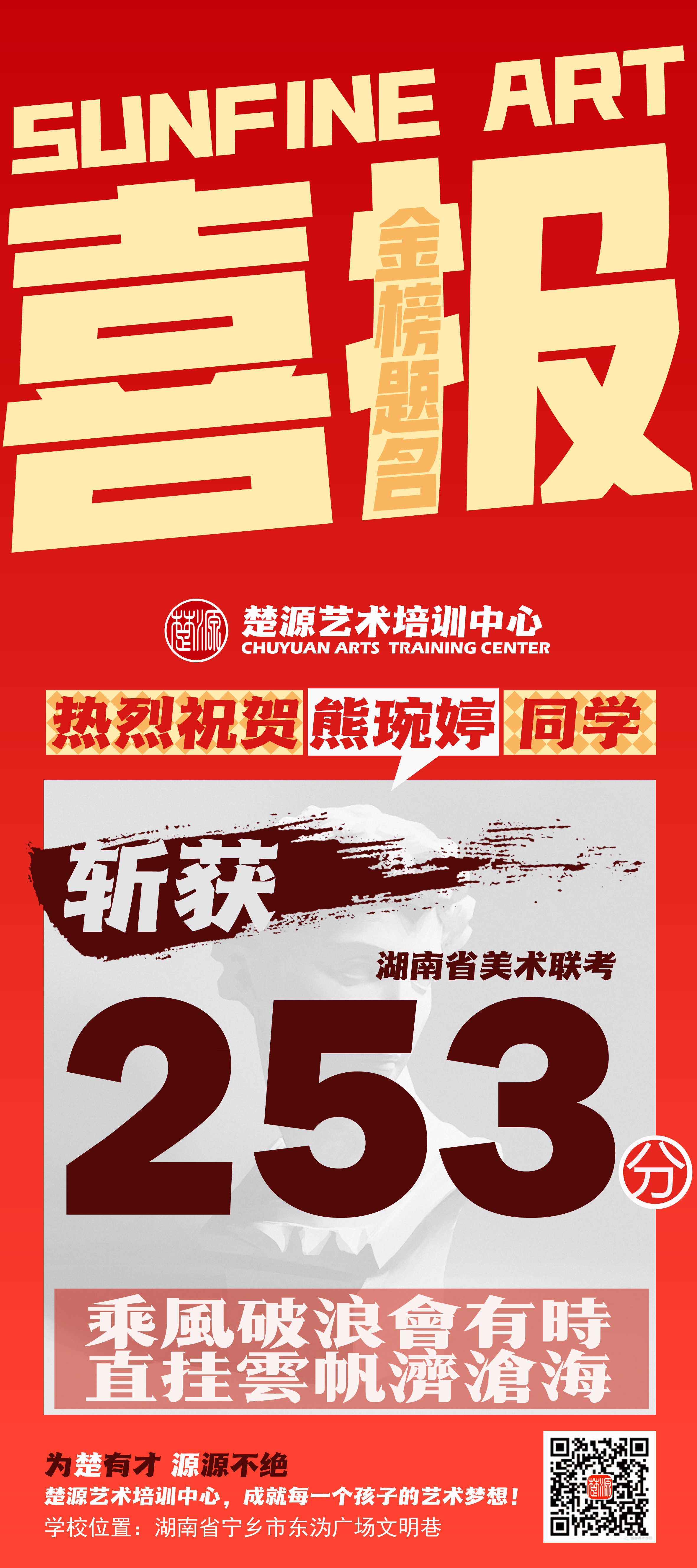 喜报成绩易拉宝熊琬婷